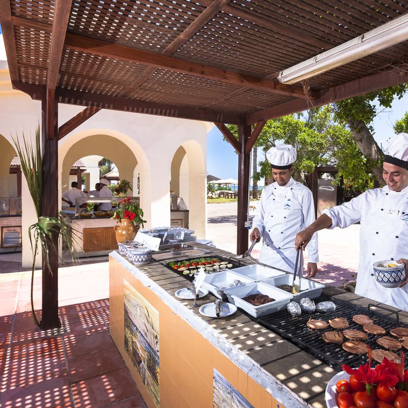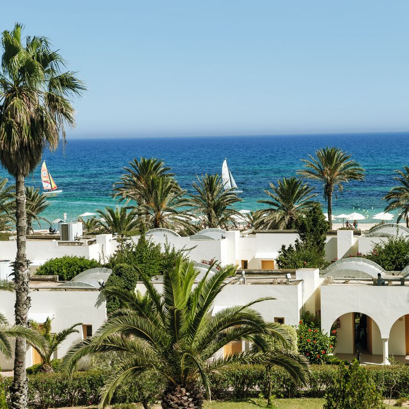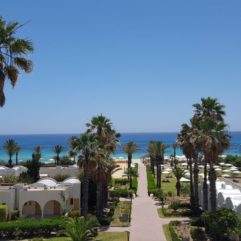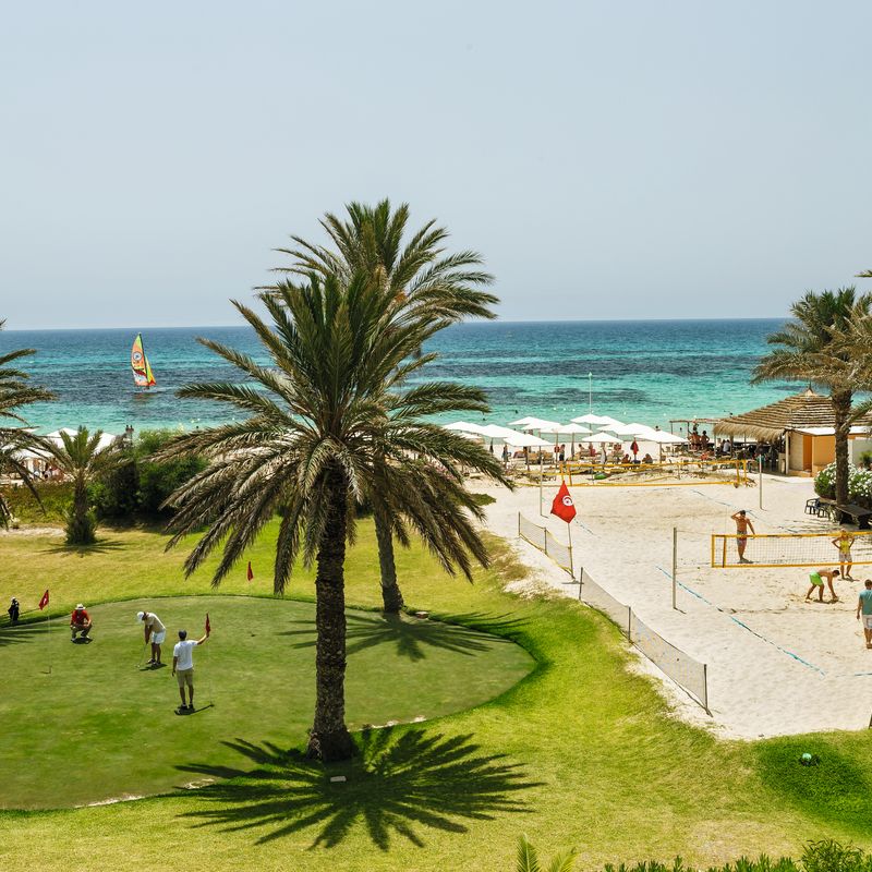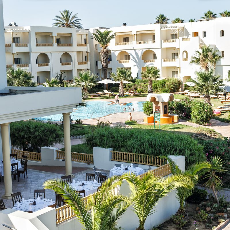 Votre hôtel Le Calimera Delfino Beach Resort & spa 4*, construit dans un style mauresque typique et niché au cœur d’un jardin verdoyant de 100 000m², directement en bordure d’une plage de sable fin, attend tous les passionnés de sport et les familles. C’est un hôtel réputé pour ses 10 courts de tennis en terre battue ainsi que son centre d’activités nautiques. À votre disposition : parking, docteur* (sur demande), bazar* (de juin à septembre), photographe*, serviettes (avec caution), baby-sitting* (sur demande), service de blanchisserie, salle de jeux, équipements pour les personnes à mobilité réduite, wifi gratuit dans tout l’établissement.*Avec supplémentLes animaux ne sont pas admis. Votre chambre Vous serez logé en chambre standard avec une capacité de maximale de 3 adultes ou 2 adultes + 1 enfant. Elles sont toutes équipées : salle de bain avec baignoire ou douche, sèche-cheveux, balcon ou terrasse, climatisation (du 15/06 au 15/09), chauffage, téléphone, coffre-fort*, télévision à écran plat par satellite, mini-frigo, machine à café, wifi gratuit.*Avec supplémentMoyennant un supplément il est possible de séjourner en chambre standard vue mer latérale ou vue piscine et en chambre familiale avec une capacité maximale de 2 adultes + 2 enfants. Dans le cas d'une chambre à usage triple ou quadruple, l'hôtel met à disposition des clients une chambre double équipée d'un lit double ou de 2 lits twins et d'un ou deux lits d'appoints (sofa, canapé lit).L’hôtel ne dispose pas de chambre PMR mais des accès dans les espaces communs, dans l’ascenseur et dans l’entrée du restaurant sont mis en place pour les PMR. Restaurants et bars Pour un séjour en toute sérénité, vous bénéficierez de la formule « Tout Inclus » dans le restaurant principal de l’hôtel présenté sous forme de buffet avec :Petit déjeuner : 7h00 - 10h00Déjeuner : 12h30 - 14h00Dîner : 19h00 - 21h00Restaurant à la carte "le Voilier" : ouvert à partir du 1er juin -19h00-21h00 (sur réservation à la réception)Restaurant de la plage/Beach snack bar : ouvert à partir du 1er juin - 12h30-14h00 (inclus dans la formule tout inclus) selon conditions météo.Snack bar (inclus dans la formule tout inclus) : - Petit déjeuner tardif : 10h00 - 12h00- Snack de l’après-midi : 14h00 - 18h00- Snack du soir : 21h00 - 06h00 Plusieurs bars sont à votre disposition :Beach bar : 10h00-18h00 Pool Bar : 10h00-00h00Lobby bar : 8h00-00h00Moorish café* : 17h00-23h00 à côté du bar de la piscine (narguilé en supplément).À noter : La formule tout inclus inclut les boissons 24h/24 (Boissons locales alcoolisées, boissons non alcoolisées, boissons froides, boissons chaudes, mini-frigo rempli à l’arrivée (boissons sans alcool). Les jus de fruits frais, le narguilé, les boissons importées, les cocktails mais aussi les boissons en bouteille ne sont pas compris. Les horaires ci-dessus sont donnés à titre indicatif, et sous réserve de modification par l’hôtelier ou selon les conditions climatiques et/ou de saisonnalité. Les restaurants à la carte sont avec réservation obligatoire et avec supplément. Vos activités et loisirs Un riche programme quotidien d’activités sportives vous sera proposé et vous pourrez assister à des spectacles en soirées. À votre disposition : 3 piscines extérieures dont 1 piscine relaxante (réservée aux adultes), piscine intérieure (chauffée en avril/mai et octobre), beach-volley, aqua gym, billard*, ski nautique*, fléchettes, catamaran*, planches à voile*, banana boat*, ski nautique*, tir à l'arc, marche nordique, aérobic, 10 courts de tennis en terre-battue (sur réservation, éclairage en supplément), 48 terrains de pétanque, tennis de table, waterpolo, football avec terrain en gazon synthétique, discothèque* (23h00-2h00)Un centre de spa est également à votre disposition avec les prestations suivantes : hammam*, sauna, massages*, soins*, fitness, salle de musculation.*Avec supplément Pour les enfants : un mini club est à disposition des enfants de 4 à 11 ans. Il est ouvert de 9h30 à 12h30 et de 15h à 17h30. A leur disposition : piscine pour enfant, activités artistiques et éducatives, salle de jeux, salle de repos et toilettes adaptés, jardin et aire de jeux.Une salle à manger pour les familles avec un buffet spécial pour enfants est à disposition. Locate Situation À 6 km de Hammamet. L’aéroport de Tunis se situe à 65km et celui de Monastir à 115km.