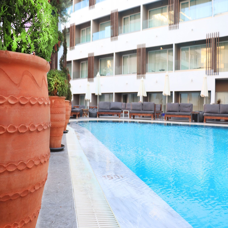Votre Hôtel L’hôtel Castellum Suites 4* est situé en plein centre de Rhodes Town, à seulement quelques minutes à pied de la plage d’Akti Kanari. Il propose environ 140 chambres, toutes équipées de climatisation et d’un balcon. L’établissement offre de nombreux services pour votre confort : connexion wifi, réception ouverte 24h/24, parking privé, service de blanchisserie*, service de navette*.*En supplément Votre chambre Vous serez logés en chambre standard d’environ 25 m² pouvant accueillir 2 adultes et 1 enfant ou 3 adultes. Toutes les chambres sont équipées de : 1 lit double, salle de bains avec douche, sèche-cheveux, climatisation, téléphone, tv, mini-frigo, bouilloire, room service, coffre-fort, balcon ou terrasse.*en supplément Restaurants et bars Pour un séjour sans contrainte, vous bénéficierez de la formule « tout inclus » comprenant aussi bien que les repas et les boissons locales alcoolisées ou non. Les repas seront servis sous forme de buffet au restaurant principal. Horaire été :Petit déjeuner matinal : 06h30 – 07h00Petit déjeuner tardif: 10h30 – 11h00Déjeuner: 12h30 – 14h30Dîner: 19h00 – 21h30Snacks: 10h30 – 12h30Bar: 10h00 – 00h00 Horaire hiver :Petit déjeuner matinal: 07h00 – 10h00Déjeuner: 12h30 – 14h30Dîner: 18h30 – 21h00Snacks: 10h30 – 12h30 & 14:30 – 17:30Bar: 09h00 – 23h00 Le service tout inclus ferme à 22h00.Non inclus dans votre formule : Room serviceMini barBanquet Remarque : Des modifications mineures peuvent intervenir concernant les heures d’ouverture et du type de service, en fonction du nombre d’invités et des conditions météorologiques.Toute boisson après 22h00 est disponible uniquement avec supplément. Les activités L’hôtel offre piscine extérieure pour adultes et enfants, chaises longues, parasols, wifi gratuit, parking privé et service d’étage, tout en étant à quelques minutes du centre-ville et de la plage d’Akti Kanari, accessibles via les navettes* mises à disposition par l’hôtel pour un déplacement facile et pratique.*en supplément Locate Situation Le Castellum Suites 4* est situé sur l’île de Rhodes, à proximité du centre-ville et de la vieille ville classée au patrimoine mondial de l’UNESCO. L’hôtel se trouve à environ 1,2 km de la plage de Akti Kanari. L’aéroport international de Rhodes est situé à environ 12 km.
