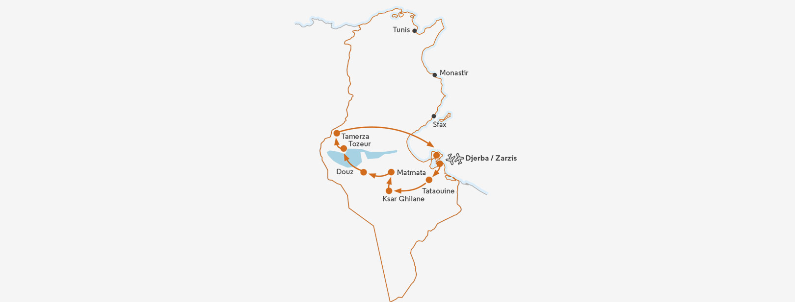 Votre circuit en bref Jour 1 : France/Djerba ou ZarzisJour 2 : Djerba ou Zarzis / Medenine / Tataouine / Douiret / Chenini / Ksar GhilaneJour 3 : Ksar Ghilane / Ksar Hallouf / Toujane / Matmata / DouzJour 4 : Douz / Chott El Jerid / TozeurJour 5 : Chebika / Tamerza / Mides / TozeurJour 6 : Tozeur / Gabes / Djerba ou ZarzisJour 7 : Djerba ou ZarzisJour 8 : Djerba ou Zarzis / France Votre circuit en détail Jour 1 : FRANCE-DJERBA OU ZARZISTransfert à votre hôtel 4* à Djerba ou Zarzis. Journée libre en formule « tout inclus ».Nuit à l’hôtel. Jour 2 : DJERBA OU ZARZIS-MEDENINE-TATAOUINE-DOUIRET-CHENINI-KSAR GHILANE (300 km)Départ après le petit déjeuner pour Médenine et visite de ses ghorfas (greniers servant à entreposer les denrées alimentaires). Visite de Ksar Hadada, ancien grenier transformé en hôtel et qui, depuis, est devenu célèbre en servant de décor à l’épisode « La Menace fantôme » de la saga Star Wars. Continuation vers Tataouine et visite de son marché. Déjeuner puis départ pour le village troglodytique de Chenini dont les habitations sont creusées dans les parois d’un cirque. Vous traverserez ensuite des pistes désertiques pour rejoindre Ksar Ghilane, la plus éloignée des oasis et haut lieu de convergence des éleveurs de chameaux et de chèvres. Installation au campement Yadis Ksar Ghilaine ou similaire.Dîner et nuitée. Jour 3 : KSAR GHILANE-KSAR HALLOUF-TOUJANE-MATMATA-DOUZ (305 km)Après le petit déjeuner, départ vers Ksar Hallouf, un grenier fortifié et abandonné surplombant la vallée, les oueds et les palmiers. Continuation vers Toujane, village aux maisons encaissées dans la montagne. Arrivée à Matmata, le pays des « cratères » où vous pourrez admirer des maisons souterraines. Ce fut également un des lieux de tournage de Star Wars. Après le déjeuner, départ vers Douz à la lisière de l’Erg oriental et fief des nomades bédouins : les M’razigues. Promenade à dos de dromadaires dans les dunes (excursion facultative payable sur place).Installation, dîner et logement à l’hôtel Sahara Douz 4* ou similaire. 4ème jour : Douz - Chott El Jerid - Tozeur (170 km)Après le petit déjeuner, départ vers Tozeur, traversée du Chott El Jerid, véritable merveille de la nature où le sable, le sel et le ciel se confondent pour vous offrir un tableau sans cesse renouvelé. Arrivée à Tozeur, célèbre oasis de verdure aux portes du désert, où les habitations en briques ocre forment de magnifiques dessins géométriques. Temps libre. Déjeuner. Dans l’après-midi, visite de la vieille ville qui vous fascinera par ses façades de briques dorées, puis visite du musée Dar Cherait qui met en scène la vie traditionnelle des habitants de la région.Dîner et nuit à l’hôtel Ras El Ain 4* ou similaire. Jour 5 : CHEBIKA-TAMERZA-MIDES-TOZEUR (160 km)Après le petit déjeuner, départ matinal pour les oasis de montagnes Chebika, Tamerza et Midès qui forment un bel éventail de paysages bibliques, de villages fantômes, de ravins, d’oueds et de canyons, ainsi que la visite de Oung el Jemel, lieu de tournage du Patient anglais et de Star Wars.Retour à l’hôtel et déjeuner. Temps libre dans l’après-midi.Dîner et logement à l’hôtel Ras El Ain 4* ou similaire. Jour 6 : TOZEUR-GABES-DJERBA (320 km)Après le petit déjeuner, visite de la palmeraie de Tozeur en calèche, en option (excursion facultative à régler sur place), puis départ vers Gabès qui est la seule oasis littorale de la Méditerranée. Palmiers, grenadiers et bananiers y poussent à foison. Arrêt photo, déjeuner puis visite du marché au henné et aux épices.Continuation sur la région de Djerba ou Zarzis, arrivée et installation à l’hôtel de votre séjour. Jour 7 : DJERBA OU ZARZISJournée libre à l’hôtel 4* en formule « tout inclus ».Nuit à l’hôtel. Jour 8 : DJERBA OU ZARZIS-FRANCETemps libre à l’hôtel 4* puis transfert à l’aéroport pour le vol à destination de la France.À noter :Les nuits à Djerba peuvent être en début ou en fin de séjour, selon la programmation du circuit.L'ordre des visites pourra être modifiéDépart garanti pour un minimum de 4 participants.Le circuit s’effectue en 4x4.Accès wifi dans le 4x4. Tataouine Tataouine Matmata Matmata L'oasis de Tozeur L'oasis de Tozeur Scène de vie à Matmata Scène de vie à Matmata Les souks de Medenine Les souks de Medenine Le Jott El Jérid Le Jott El Jérid Une plage à Djerba Une plage à Djerba Les épices des souks Les épices des souks Medenine Medenine Locate