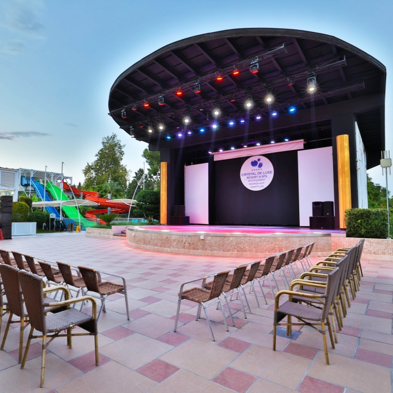 Votre hôtel L’hôtel Crystal Deluxe Comfort Collection 5* construit sur une surface de 16 000m² et situé en bord de mer est le lieu idéal pour vous divertir ou pour un séjour détente. Doté de 356 chambres, vous aimerez partir à la découverte de la région, vous adonner au farniente sur la plage privée ou vous octroyer un instant de détente au spa. À votre disposition : réception 24h/24, room service 24h/24*, salon de beauté*, salon de coiffure*, location de voitures*, médecin*, boutiques*, blanchisserie*, téléphone/fax*, parking gratuit, service de bagagerie, transats et parasols, serviettes de plage, wifi.*Avec supplémentLes animaux ne sont pas admis au sein de l’établissement. Votre chambre Durant votre séjour, vous serez logé en chambre standard d’environ 27 m² joliment décorée. Ces chambres peuvent accueillir jusqu’à 3 personnes. Elles sont toutes équipées de : balcon, salle de bains avec douche, WC et sèche-cheveux, télévision LCD, téléphone avec ligne directe*, coffre-fort, climatisation centralisée, minibar, nécessaire à thé/café, wifi.*Avec supplémentDans le cadre d'une chambre à usage triple ou quadruple, vous serez logé en chambre double équipée d'un lit double (ou de 2 lits twins) et de 1 ou 2 lits d'appoint (sofa, canapé lit).L’hôtel dispose de chambres PMR (sur demande et selon disponibilité). Restaurants et bars Vous séjournerez en formule ultra tout inclus, qui comprend les repas, les boissons locales alcoolisées ou non ainsi que les snacks. Les repas seront servis sous forme de buffet au restaurant principal de l’hôtel le Panaroma, qui propose des saveurs locales et internationales.Votre formule ultra tout inclus comprend :Petit-déjeuner : de 07h00 à 11h00Déjeuner : de 12h30 à 14h30Snack : de 11h00 à 18h00 Glaces : de 11h00 à 23h00Pâtisserie : de 11h00 à 20h00Dîner : de 18h30 à 21h30Snack de nuit : de 21h30 à 07h00 Plusieurs restaurants à la carte seront à votre disposition sur réservation (gratuit une fois dans l’un des restaurants pour les séjours de 4 nuits minimum) :Italian à la carte : de 18h30 à 21h30Turkish à la carte : de 18h30 à 21h30Mexican à la carte : de 18h30 à 21h30Fish à la carte : de 18h30 à 21h30Pour vous rafraîchir, à votre disposition également plusieurs bars :Lobby lounge bar : 24h/24Lagoon pool bar : de 10h00 à 17h00Vital bar : de 10h00 à 18h00Saphire disco bar : de 23h00 à 02h00À noter que la formule ultra tout inclus comprend les boissons 24h/24. Les horaires sont donnés à titre indicatif et peuvent être soumis à modification sans préavis. Les jus de fruits frais, les boissons importées, certains cocktails mais aussi les boissons en bouteilles ne sont pas compris. Vos activités et loisirs Une équipe d’animation vous proposera une animation internationale ainsi que des spectacles le soir. Que vous soyez vacances actives ou doux moments de détente, chaque membre de la famille trouvera son bonheur parmi les nombreuses activités proposées à l’hôtel. À votre disposition : plage privée, deux piscines extérieures dont une pour enfants (ouvertes de 08h00 à 20h00), une piscine avec toboggans, deux piscines intérieures dont une pour enfants (chauffée du 01/11 au 31/03), terrain de tennis (éclairage* et équipements*), basket-ball, volleyball beach, salle de fitness (de 07h00 à 21h00), tennis de table, fléchettes, live music, disco, cinéma.Un centre de spa sera à votre disposition avec les prestations suivantes : sauna, bain turc, chambre à vapeur, piscine relax*, bain à remous*, massages* et soins*.*Avec supplémentPour les enfants : un mini club international est proposé aux enfants de 4 à 12 ans de 10h00 à 23h00. À leur disposition : activités manuelles, aire de jeux, piscines pour enfants, mini cinéma, mini disco…À noter qu’au vu de la météo, certains équipements extérieurs peuvent ne pas être praticables et certaines activités annulées. Les activités, les sports et les soirées sont encadrés par une équipe d’animation internationale. Locate Situation L’hôtel se situe en bord de mer, à proximité du centre de Kemer. Il se trouve à 56 km de l’aéroport international d’Antalya et à 38 km du centre-ville d’Antalya.