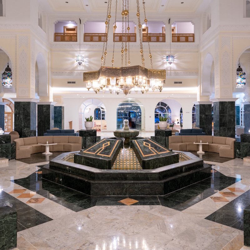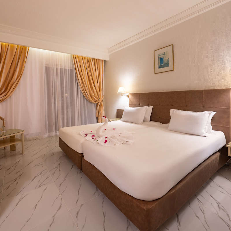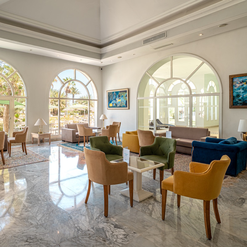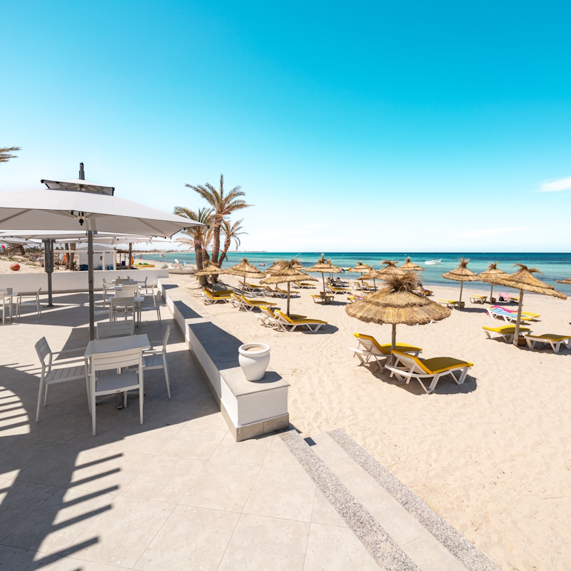 Votre hôtel L’hôtel Djerba Golf Resort & Spa dispose de 275 chambres spacieuses et confortables réparties sur 3 étages, offrant une vue sur la mer, la piscine ou le jardin. La réception est ouverte 24h/24, le wifi est gratuit dans tout l’hotel et dans les chambres, parking, service de bagagerie*, boutiques*, parasols et transats à la plage*, Serviettes de plage*, blanchisserie*, Lit bébé disponible sur réservation et selon disponibilité*. * Avec supplément Pour info, le Burkini est interdit dans l’hôtel. Votre chambre Pour un séjour agréable, vous serez logé en chambre standard premium de 26m2 avec vue sur jardin et d’une capacité pouvant accueillir jusqu’à 3 personnes. La chambre est composée d’une terrasse, d’une climatisation, d’un téléphone, d’une télévision écran plat par satellite, wifi, d’un mini-bar (avec une bouteille d’eau à l’arrivée seulement), d’un coffre-fort, d’une salle de bains avec baignoire ou douche avec sèche-cheveux et des toilettes et bidets séparés. Le lit bébé* est disponible sur demande avec supplément. *Avec supplément Si vous êtes plus de 3, vous pourrez séjourner dans une chambre familiale de 40 m2 pouvant accueillir jusqu’à 6 personnes.Dans le cas d’une chambre à usage triple, l’hôtel met à disposition des clients une chambre double équipée d’un lit double (ou de 2 lits twins) et d’un lit d’appoint (sofa, canapé-lit). Restaurants et bars Séjournez avec la formule tout inclus, qui comprend les repas avec boissons servis sous forme de buffet au restaurant principal de l’hôtel El Menzal. Le restaurant propose des menus à thèmes sous forme de buffets et show cooking, riches et variés.Votre formule tout inclus comprend :Petit déjeuner : de 7h00 à 10h00Déjeuner : de 12h30 à 14h30Dîner : de 19h00 à 21h30Sporting Beach Restaurant Plage (situé en bord de mer, ouvert du 15/05 au 15/10). Déjeuner : 12h30 – 15h00 (de juin à septembre) Diner (à la carte) : 20h00 – 22h30 (de juin à septembre) L’hôtel dispose également d'un restaurant avec réservation et supplément : Il Gusto* (spécialités italiennes, tunisiennes et méditerranéennes), une participation de 10€ est demandé pour les adultes et 5€ pour les enfants (Il est possible d’y manger une fois par séjour) Diner : 19h30 à 21h30 Restaurant nécessitant une simple réservation : La Pergola (Pizza cuite au four à bois) : Ouvert tous les soirs avec réservationDiner : 19h00 à 21h30 3 bars et 1 café maure sont à votre disposition pour vous relaxer tout en vous désaltérant (Les boissons alcoolisées locales sont payantes après 22h00) : Blue Lobby Bar (ouvert à l’année) : 08h00 – 00h00 Granada (bar de piscine avec snack) (ouvert de mai à octobre selon conditions climatiques) : 10h00 – 00h00Le sporting Beach (bar de plage) (ouvert de mai au 15 octobre selon conditions climatiques) : 10h00 – 19h00Café maure* : ouvert de 16h00 à 18h30. Vous profiterez d’une discothèque (le mirage) qui ouvre de 22h00 à 00h00 selon la saison. Les boissons non alcoolisées sont payantes après minuit et après 22h00 pour les boissons alcoolisées locales. Les spiritueux importés sont en supplément. *avec supplément À noter que la formule tout inclus comprend les boissons de 10h00 à 23h00 (servies au verre). Les horaires sont donnés à titre indicatif et peuvent être soumis à modification sans préavis de la part de l’hôtelier et ce, sans que la responsabilité de Mondial Tourisme soit engagée. Les jus de fruits frais, les boissons importées, les cocktails mais aussi les boissons en bouteille ne sont pas compris. L’ouverture des points de vente extérieurs est soumise aux conditions climatiques. Vos activités et loisirs Une équipe d’animation dynamique vous propose, tous les jours, différentes activités en journée et en soirée. À votre disposition : piscine extérieure à débordement avec pataugeoire pour enfants, beach-volley, football, pétanque, gymnastique, aquagym, tennis, tennis de table, Animation en soirée avec (Music-hall, karaoké, danse).En supplément vous pourrez faire du ski nautique*, parachute ascensionnel*, scooter des mers*, quad*, équitation*, golf*.A noter : Le burkini est interdit à la piscine centrale de l'hôtel L’établissement dispose d’un centre de thalassothérapie*(Salus Golf SPA) ultra moderne de 1 200 m2 proposant de nombreuses prestations avec notamment une piscine couverte chauffée (du 01/11 au 31/03) ainsi qu’une multitude de soins, cures et massages.* Avec supplément Pour les enfants : un mini-club est disponible de 10h00 à 12h30 puis de 15h00 à 17h30 pour les enfants de 4 à 12 ans. À noter qu’au vu de la météo, certains équipements extérieurs peuvent ne pas être praticables et certaines activités annulées. Les activités, les sports et les soirées sont encadrés par une équipe d’animation internationale. Locate Situation L’hôtel Djerba Golf Resort se situe dans la zone touristique de Midoun à Djerba au milieu d’un parc écologique de 13 hectares. Il est idéalement placé entre un terrain de golf et la magnifique plage de Sidi Mahrez. L’hôtel se trouve à 25km de l’aéroport Djerba-Zarzis, à 18km de Houmt Souk, à 5km du Casino de Djerba et à 6km de Midoun.