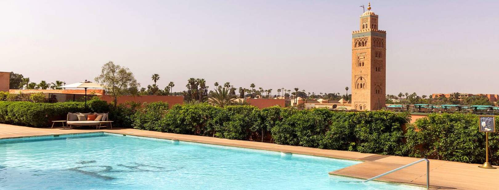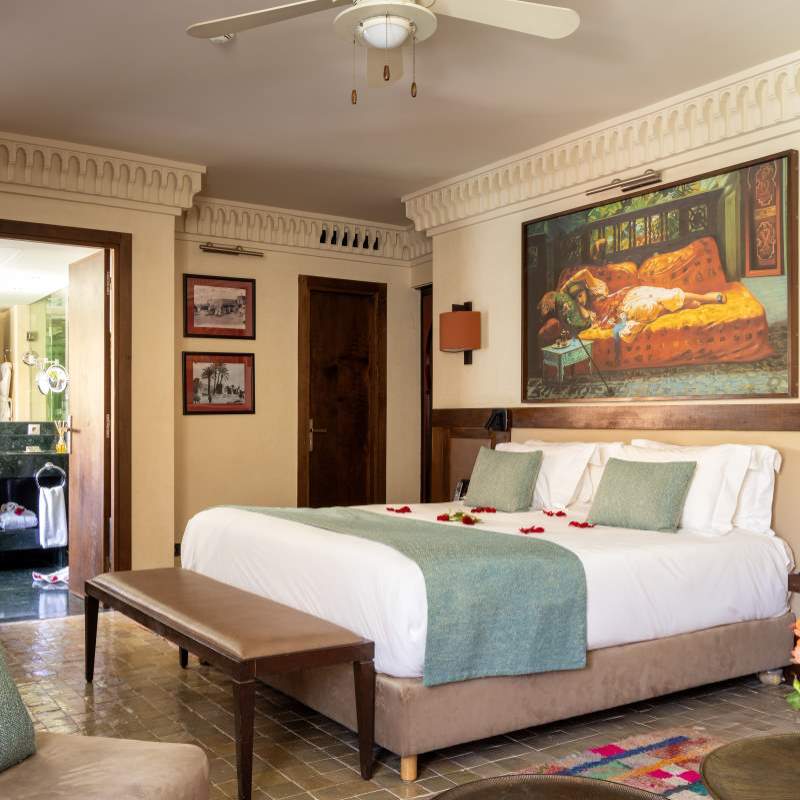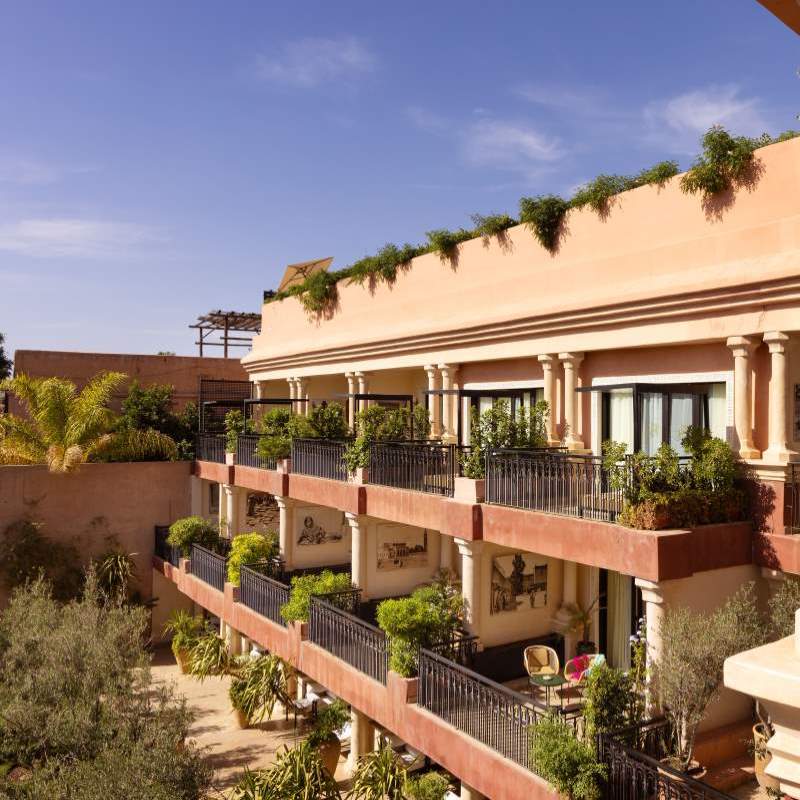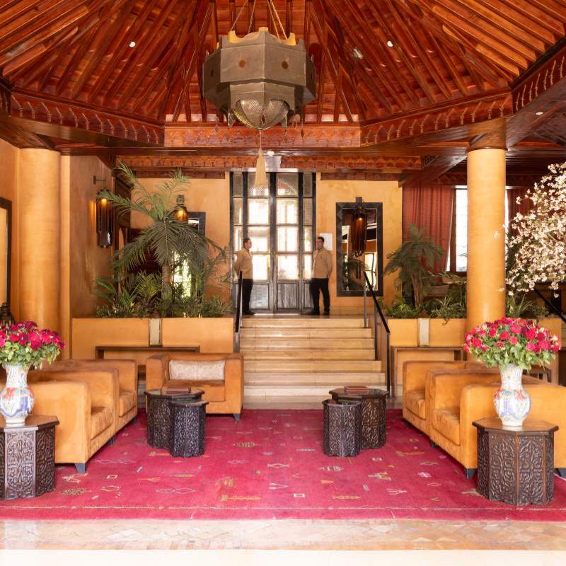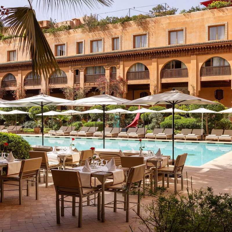 Votre hôtel Établissement emblématique de la ville ocre, Les Jardins de la Koutoubia 5* séduit par son élégance, la qualité de son service, son spa d’exception et sa gastronomie raffinée. À proximité immédiate des souks, du Palais Royal et des trésors de la Médina, l’hôtel dispose de 108 chambres et propose de nombreux services : réception 24h/24, service de change, blanchisserie*, baby-sitting* (sur demande), conciergerie, boutiques, salon de coiffure*, un spa* d’exception, connexion Wi-Fi gratuite.*Avec supplément Votre chambre Vous séjournerez en chambre standard avec vue sur patio, d’environ 38 m², pouvant accueillir jusqu’à 3 personnes.Toutes les chambres sont équipées de : télévision par satellite, climatisation/chauffage, coffre-fort, téléphone avec ligne directe, mini réfrigérateur, salle de bains avec baignoire, douche à l’italienne et sèche-cheveux, wifi. Restaurants et bars Votre séjour inclut la formule petit déjeuner.Avec supplément, découvrez :- Restaurant Koutoubia : cuisine marocaine authentique. Ouvert tous les soirs de 19h30 à 22h30.- Les Jardins de Bala : spécialités indiennes et asiatiques. Déjeuner de 12h00 à 15h30, dîner à partir de 19h30. Terrasse avec vue imprenable sur la Koutoubia.- Relais de Paris : cuisine internationale, poissons frais et viandes grillées au feu de bois. Dîner de 19h30 à 22h30.- Snack Bar Imlil : au bord de la piscine principale, ouvert de 10h00 à 17h00.- Piano Bar Ouarzazi : ambiance feutrée de 17h00 à minuit. Cocktails préparés par le Chef Barman.- Sky bar : ouvert de 10h00 à minuit. Vos activités et loisirs Inclus :- Piscine extérieure- Piscine intérieure (réservée aux curistes)- Transats et parasols- Prêt de serviettesAvec supplément :Accès au centre de spa comprenant :- 7 cabines de soins et massages- 4 hammams- Piscine intérieure avec bain à remous- Salle de sport- Espace détente et tisanerie Locate Situation Idéalement situé au cœur de la Médina, l’hôtel Les Jardins de la Koutoubia 5* constitue le point de départ parfait pour explorer Marrakech. À seulement 4 minutes à pied de la place Jemâa el-Fnaa et à environ 7 km de l’aéroport international de Marrakech-Menara.