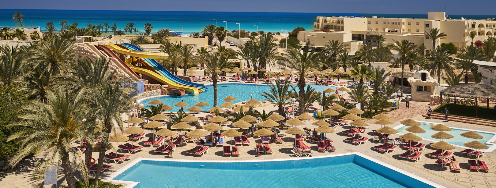 Votre hôtel Baignant dans un cadre chaleureux, à l'architecture inspirée des cultures méditerranéenne et arabo-andalouse et au cœur de la zone touristique de Djerba, l’hôtel Les Quatre Saisons 3*sup vous permet de vous détendre via son centre de thalassothérapie et de vous divertir en profitant de son toboggan et des diverses activités sportives et animations de l'établissement.À votre disposition : réception 24h/24, service de taxis et de location de voiture*, wifi gratuit à la réception, au café maure et à la terrasse du restaurant principal, serviettes de plage et piscine (avec caution et payant), service de change*, baby-sitting* (sur demande), service de blanchisserie*, médecin* (sur demande), boutiques de souvenirs*, photographe*, coffre-fort* (5DT/jour.L’établissement est en cours d’homologation pour l’obtention de sa classification 4 étoiles.* Avec supplément Votre chambre Pour un séjour agréable, vous serez logé en chambre standard vue jardin. La capacité maximale d’accueil en chambre est de 2 adultes et 1 enfant. Toutes les chambres sont équipées de : climatisation du 15/06 au 15/09, téléphone, TV satellite, coffre-fort* (5DT/jour), mini-bar, sèche-cheveux, salle de bains avec baignoire ou douche, balcon ou terrasse.*Avec supplémentDans le cas d’une chambre à usage triple ou quadruple, l’hôtel met à disposition des clients une chambre double équipée de 1 lit double ou de 2 lits twins et de 1 lit d’appoint.Moyennant un supplément, vous serez logés en chambre standard vue piscine ou en chambre supérieure pouvant accueillir jusqu’à 2 adultes et 1 enfant.L’hôtel ne dispose pas de chambre PMR. Restaurants et bars Séjournez l’esprit libre avec la formule all inclusive, qui inclut les repas servis sous forme de buffet au restaurant principal de l’hôtel, où vous découvrirez des saveurs locales et internationales, ainsi que les boissons locales alcoolisées ou non et les snacks.Votre formule tout inclus comprend :Petit déjeuner, déjeuner et dîner servis au restaurant principal qui vous propose une grande variété de spécialités et des buffets à thème, riches aux saveurs méditerranéennes, tunisiennes et internationales, muni d’une grande terrasse donnant directement sur la piscine.Le complexe Les Quatre Saisons abrite 3 restaurants :Restaurant central : avec sa terrasse face à la piscine, vous dégusterez des plats internationaux sous forme de buffet à thème.Restaurant Plage : Vous dégusterez des snacks dans un cadre paradisiaque en profitant de la magnifique mer bleue de Djerba.Restaurant A thème Tunisien : (Réservation 1 fois/séjour) Plusieurs bars seront à votre disposition pour vous permettre de vous rafraîchir :Bar central : Boissons alcoolisées et des cocktails.Bar Piscine : Au bord de la piscine, on vous sert une variété de boissons rafraichissante.Bar Plage: Sur sa magnifique terrasse ou sur les transats de la plage privée, profitez des boissonsBar Hacienda : Réservé aux résidents de l’haciendaCafé Maure: Dans une ambiance mauresque, vous savourez un thé à la menthe, un café turc ou bien une chicha.À noter que la formule tout inclus comprend les boissons de 09h00 à minuit (servies au verre). Les horaires sont donnés à titre indicatif et peuvent être soumis à modification sans préavis de la part de l’hôtelier et ce, sans que la responsabilité de Mondial Tourisme soit engagée. Les jus de fruits frais, les boissons importées, les cocktails mais aussi les boissons en bouteille ne sont pas compris. L’ouverture des points de vente extérieurs est soumise aux conditions climatiques. Vos activités et loisirs Une équipe de professionnels vous proposera une animation en journée avec des activités sportives et ludiques. Des animations sont également prévues en soirée (grande variété de spectacles pour les adultes et pour les enfants), ainsi qu’un amphithéâtre en plein air à partir du 15/06. À votre disposition : piscine d’eau douce, piscine d’eau de douce avec toboggan, piscine relax d’eau douce au calme, piscine intime à l’hacienda, pataugeoire pour enfants), 2 terrains de tennis, mini terrain de football, mini-golf, pétanque, aérobic, tennis de table, aquagym, water-polo, fléchettes, beach-volley, centre de thalassothérapie avec piscine réservée aux curistes*, équitation et promenade à dos de chameaux* (à proximité de l’hôtel), sports nautiques motorisés *(à proximité de l’hôtel), quad*, jeux de société, jeux tournois. Le centre de thalassothérapie* doté d’une piscine couverte payante réservée aux curistes vous proposera : cabines esthétiques équipées de couverture chauffante, piscine couverte dotée d’un parcours biomarin, hammam, cabines de douche à affusion, douche à jet, bains hydromassants, cabines de massage, espace de détente, tisanerie ainsi qu’un large choix de cures : remise en forme, antistress, minceur, spéciale dos, spéciale jambes, anti-arthrose.*Avec supplément et parfois indépendant de l’hôtelPour les enfants : les enfants de 4 à 12 ans pourront profiter des nombreuses activités proposées au mini-club par l’équipe dédiée, ainsi que d’une mini-discothèque chaque soir. Vos enfants ont pourront également profiter d’une pataugeoire.À noter qu’au vu de la météo, certains équipements extérieurs peuvent ne pas être praticables et certaines activités annulées. Les activités, les sports et les soirées sont encadrés par une équipe d’animation internationale. Locate Situation À 4 km de Midoun et à 15 km de la capitale de l’île Houmt Souk. L’aéroport de Djerba-Zarzis se trouve à 25 km.