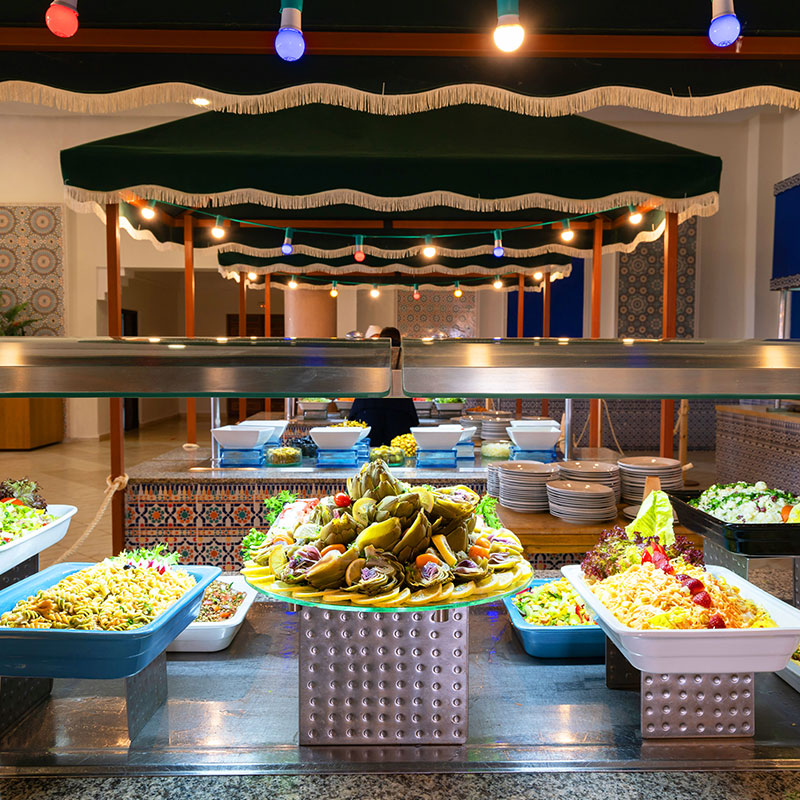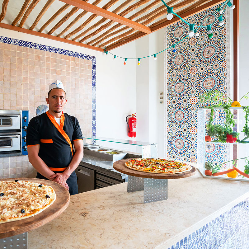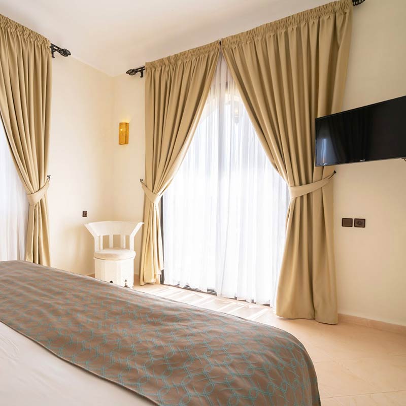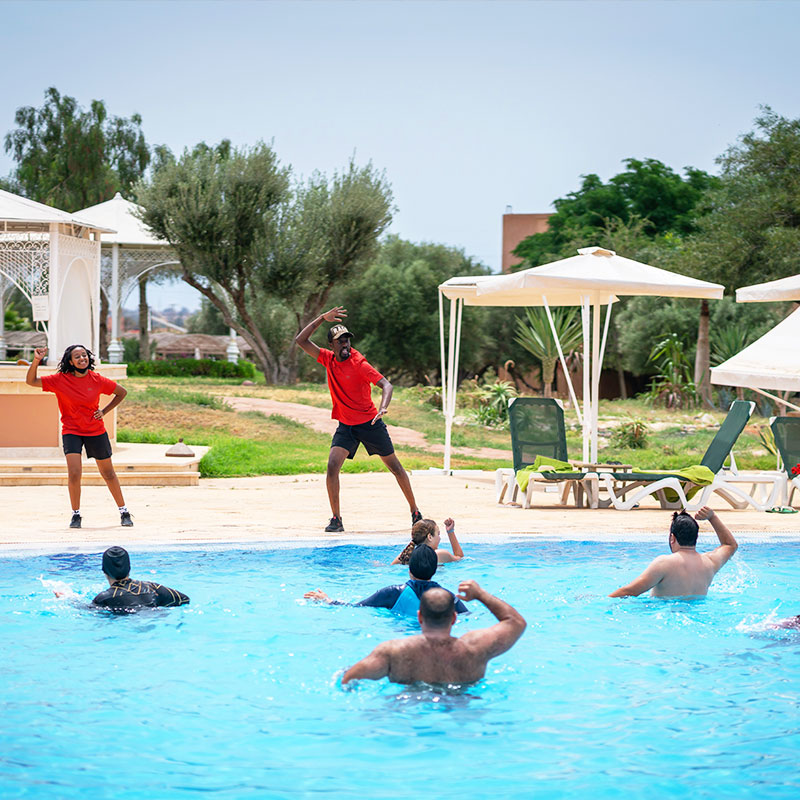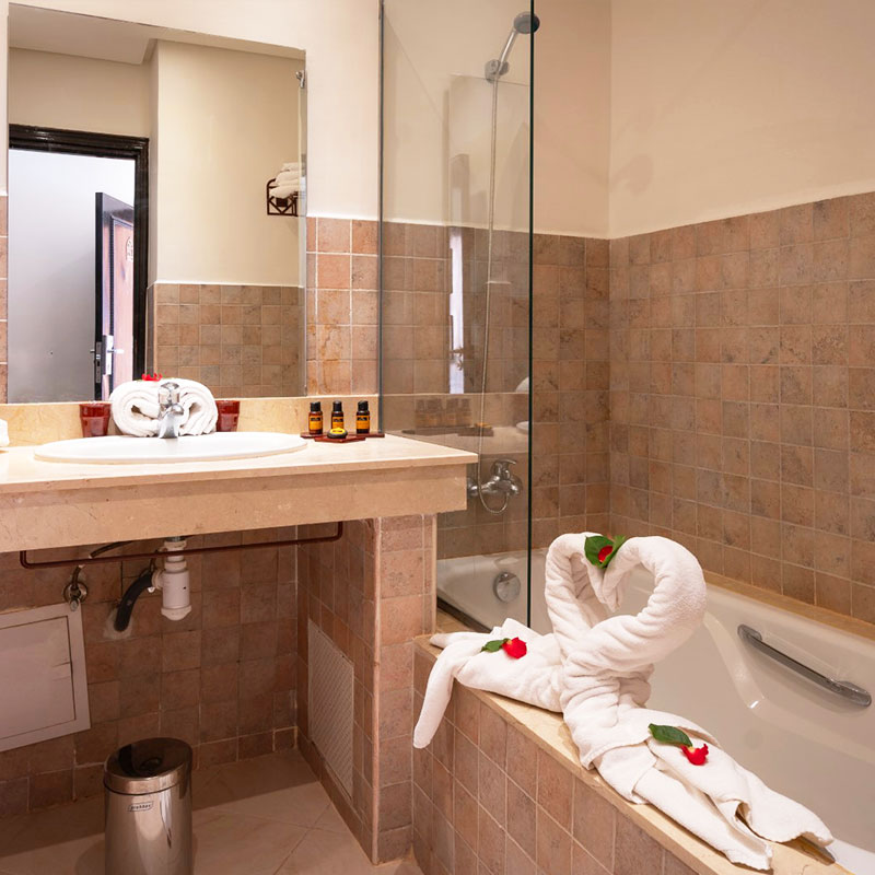 Votre Mondi Club Le Mondi Club Ryads Parc 4* dispose de 260 chambres au design moderne inspiré du style traditionnel marocain, certaines offrent une vue imprenable sur les sommets de l’Atlas. A votre disposition : réception 24h/24, blanchisserie/nettoyage à sec*, distributeur automatique de billets, boutique de souvenirs/cadeaux, navette vers le centre-ville*, wifi, serviette de piscine contre caution (environ 100MAD).Une taxe de séjour d’environ 1,90€ par nuit et par personne (à partir de 4 ans) est à régler sur place.*Avec supplément Votre chambre Vous serez logés en chambre standard d’environ 29 m², la capacité maximale de cette chambre est de 3 adultes et 1 enfant ou 4 adultes. Elle est dotée de tous les équipements dont vous avez besoin pour un confort total, dans un cadre agréable et élégant. À votre disposition : 1 grand lit ou 2 lits simples et 1 canapé-lit, balcon, climatisation, télévision à écran plat, coffre-fort*, mini-bar, téléphone*, salle de bains avec baignoire et sèche-cheveux, wifi.*Avec supplémentDans le cadre d'une chambre à usage triple ou quadruple, vous serez logé en chambre double équipée d'un lit double (ou de 2 lits twins) et de 1 ou 2 lits d'appoint (sofa, canapé lit). Restaurants et bars Séjournez l’esprit libre avec la formule "tout inclus" comprenant les repas servis sous forme de buffet au restaurant principal de l’hôtel, où vous découvrirez des saveurs locales et internationales, ainsi que les boissons locales alcoolisées ou non et les snacks. Votre formule "tout inclus" comprend : Petit déjeuner : de 07h30 à 10h00Petit déjeuner tardif au bar La Terrasse : café/thé et viennoiseries de 10h00 à 11H00Déjeuner : de 12h30 à 15h00Dîner : de 19h00 à 21h30Goûter : de 16h00 à 17h00Snacks : de 12h30 à 15h00 Avec supplément :Snacks en dehors des horaires mentionnés ci-dessus. 2 bars sont également à votre disposition tout au long de la journée :Le bar principal La Terrasse, ouvert de 10h00 à minuitLe bar américain Blue Bar, ouvert de 20h30 à 01h00 (réservé aux adultes et payant à partir de 23h00)La formule "Tout inclus" comprend une sélection de boissons locales alcoolisées et non alcoolisées de 10h00 à 23h00 (servies au verre). Les horaires sont donnés à titre indicatif et peuvent être soumis à modification sans préavis de la part de l’hôtelier et ce, sans que la responsabilité de Mondial Tourisme soit engagée. Les jus de fruits frais, les boissons importées, les cocktails mais aussi les boissons en bouteilles ne sont pas compris. Vos activités et loisirs Les animateurs francophones Mondi Club, parfaitement intégrés à l’équipe d’animation internationale de l’hôtel, vous proposeront des activités sportives et ludiques en journée ainsi que des animations nocturnes. À votre disposition : grande piscine non chauffée équipée de chaises longues et de parasols, petite piscine chauffée pendant les vacances scolaires, piscine couverte (réservée aux curistes), pétanque, basket-ball , volley-ball, tennis, football, salle de sport.Le WUD Spa* vous fera voyager dans une myriade magique de senteurs, de couleurs, de volupté, et de bien-être, offrant une relaxation totale.* Avec supplémentPour les enfants : un mini-club avec aire de jeux est proposé aux enfants âgés de 4 à 12 ans, il est ouvert de 09h30 à 12h30 et de 14h30 à 17h30. Locate Situation Au cœur d’un beau jardin à environ 13 km du centre-ville de Marrakech et à 18 km de son aéroport.