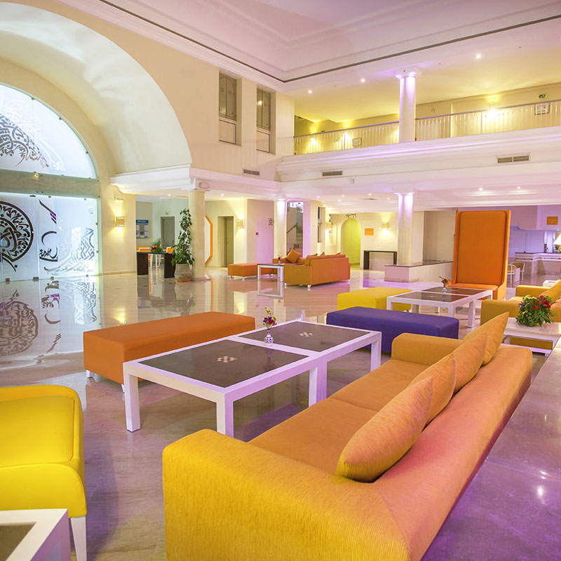 Votre Mondi Club Niché au milieu d'un magnifique parc fleuri de 6 hectares, le club dispose de 318 chambres réparties entre un bâtiment principal de 2 étages et des bungalows regroupés en 7 menzels traditionnels. Ce club saura ravir petits et grands grâce à ses nombreuses infrastructures et sa grande piscine centrale. A votre disposition : réception 24h/24, serviettes de plage (avec caution), chaises longues et parasols, bureau de change, distributeur automatique de billets, coiffeur*, boutiques*, nettoyage à sec*, blanchisserie*, service de repassage*, wifi gratuit à la réception et au Lobby bar.*Avec supplément Votre chambre Pour un séjour agréable, vous serez logés en chambre standard confortable et à la décoration locale, dotées d’un grand lit ou de deux lits simples. La capacité maximale d'accueil en chambre est de 3 adultes + 1enfant ou 3 adultes.Elles sont toutes équipées de : balcon ou d’une terrasse, climatisation, de chauffage, téléphone (pas de ligne directe), TV par satellite, salle de bains privative avec sèche-cheveux, coffre-fort*, mini bar sur demande* (10 dinars/jour)*Avec supplémentMoyennant un supplément tarifaire vous pourrez séjourner dans une chambre standard avec une vue mer. La capacité maximale est de 3 adultes + 1 enfant ou 3 adultes.Dans le cas d'une chambre à usage triple ou quadruple, l'hôtel met à disposition des clients une chambre double équipée d'un lit double (ou de 2 lits twins) et de un ou deux lits d'appoints (sofa, canapé lit).L’hôtel dispose de 2 chambres PMR de type bungalows pouvant accueillir jusqu’à 3 personnes (sur demande et selon disponibilité). Restaurants et bars Séjournez l’esprit libre avec la formule « All inclusive », qui inclut aussi bien les repas servis sous forme de buffet au restaurant principal de l’hôtel doté d’une belle terrasse, où vous découvrirez des saveurs locales et internationales, ainsi que les boissons locales alcoolisées ou non.Votre formule tout inclus comprend :Petit-déjeuner : 6h00 à 10h00 Petit déjeuner tardif : 10h à 12h Déjeuner sous forme de buffet (cuisine locale et internationale) : 12h30 à 14h30Gouter: 16h à 17hDîner sous forme de buffet (cuisine locale et internationale) : 19h00 à 21h30 Vous pourrez également assister à un dîner à la carte au restaurant de la plage chez Max (19h00 à 21h30) , une fois par séjour et par personne, sur réservation (menu oriental). 5 bars seront également à votre disposition pour vous rafraichir : Lobby bar : 9h00 à 00h00Bar Bacchus* : 18h00 à 02h00Bar de la piscine (selon conditions météorologiques) : 10h00 à 18h00Bar de plage (selon conditions météorologiques) : 10h00 à 18h00Café Maure (Café tunisien, thé) * : 15h00 à 23h00 *Avec supplémentLes horaires sont donnés à titre indicatif et peuvent être soumis à modification sans préavis de la part de l’hôtelier et ce, sans que la responsabilité de Mondial Tourisme en soit engagée. Les jus de fruits frais, les boissons importées, les cocktails mais aussi les boissons en bouteilles ne sont pas compris. Vos activités et loisirs Au Mondi Club Seabel Aladin 3* vous n’aurez jamais le temps de vous ennuyer. Les animateurs francophones Mondi Club, parfaitement intégrés à l’équipe d’animation internationale de l’hôtel, vous proposeront des activités sportives et ludiques en journée ainsi que des animations nocturnes et un mini club pour les enfants de 4 à 12 ans. A votre disposition : plage équipée de transats et parasols , piscine extérieure avec parasols et transats (serviettes avec caution), piscine intérieure avec bassin pour enfant (de 9h à 18h et chauffée du 1/11 au 31/03), 5 courts de tennis dont 3 qui sont éclairés (éclairage en supplément), tennis de table, badminton, beach-volley, tir à l’arc, mini-football, pétanque, fléchettes, cours de danse, aquagym, aérobic, water-polo, amphithéâtre pour spectacles et animations en soirée, sports nautiques* en fonction de la météo (ski nautique, jet ski, banana, plongée sous-marine, parachute ascensionnel) * (à l'extérieur de l'hôtel). Un SPA* sera à votre disposition avec les prestations suivantes : piscine intérieure, hammam, bain bouillonnants, douche à affusion, massages, soin du corps et du visage.*Avec supplément Pour les enfants : Un mini-club pour les 4 à 12 ans est mis à la disposition de vos enfants tous les jours (sauf le dimanche) et toute l’année de 9h à 12h et de 14h30 à 17h. Une aire de jeux est à la disposition des enfants. Il propose un programme d’activités adaptées : jeux, initiation et tournois sportifs, balades, ateliers manuels, participation aux spectacles, table d’hôtes et goûter. Le Teen Club propose des programmes d’activités pour les ados de 12 à 17 ans tout au long de la journée avec également des spectacles. A noter qu’au vu de la météo, certains équipements extérieurs peuvent ne pas être praticables et certaines activités annulées. Le burkini n’est pas autorisé. Locate Situation À 30km environ de l’aéroport de Djerba, 6 km de Midoun et 20 km de Houmt Souk, la capitale de l’île.