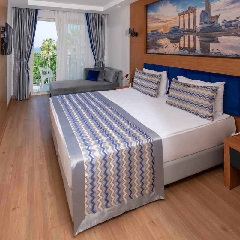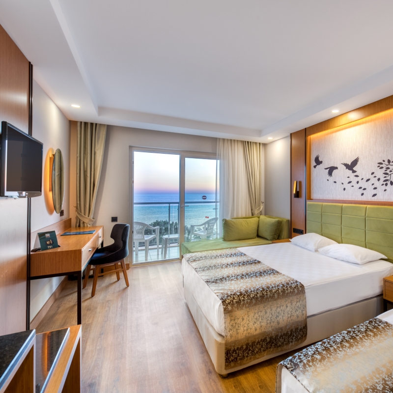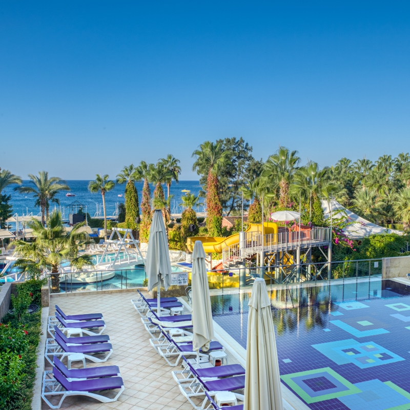 Votre Mondi Club Le Mondi Club Sealife Buket Resort & Beach est un établissement 5* construit en 1994 et rénové en janvier 2023, disposant de 328 chambres, toutes décorées avec goût dans des tons lumineux et modernes. Envie de passer de belles vacances en famille ? Cet hôtel vous offrira un cadre des plus agréables, directement les pieds dans l’eau. En plus de la plage privée de sable et de galets, vous y trouverez également 4 piscines dont 1 avec 2 toboggans pour vous initier aux joies de la glisse. Envie de vacances actives ? Profitez des différentes activités qui vous seront proposées ou offrez-vous tout simplement des instants de détente et d’évasion avec les délicieux soins prodigués par le centre de spa et de bien-être. A votre disposition : plage privée, salle de conférence, piscines, wifi, spa et centre de fitness. Votre chambre Pour passer des vacances sous le signe du confort, vous séjournerez en chambre standard de 20-21 m². Cette chambre peut accueillir jusqu’à 3 adultes et est équipée d'un lit double (ou de 2 lits twins) et d’un lit d'appoint (sofa, canapé lit). Toutes les chambres sont équipées de : salle de bains avec douche et sèche-cheveux, climatisation, balcon, télévision par satellite, mini-bar (2 bouteilles d’eau offertes par jour), coffre-fort, téléphone avec ligne directe*, wifi, nécessaire à thé/café.*Avec supplémentMoyennant un supplément, vous pourrez séjourner en chambre standard avec vue mer partielle disposant des mêmes commodités que la chambre standard. Dans le cadre d'une chambre à usage quadruple, vous serez logé en chambre large room de 24 m² équipée d'un lit double (ou de 2 lits twins) et de 2 lits d'appoint (sofa, canapé lit). La chambre peut accueillir jusqu’à 3 adultes et 1 enfant ou 2 adultes et 2 enfants + 1 bébé.L’hôtel dispose de 3 chambres PMR de 20-21 m² pouvant accueillir jusqu’à 2 personnes (sur demande et selon disponibilités). Restaurants et bars Pour des vacances en toute tranquillité, vous séjournerez en formule ultra tout inclus comprenant les repas, les boissons locales alcoolisées ou non, les snacks (pommes de terre au four, gozleme, beignets), les glaces, et le souper de minuit. Les repas sont servis sous forme de buffet, au Amber restaurant, le restaurant principal de l’hôtel.Votre formule ultra tout inclus comprend :Petit déjeuner : de 7h30 à 10h00Petit déjeuner tardif : de 10h00 à 10h30Déjeuner : de 12h30 à 14h00Snack : de 12h00 à 16h00Gözleme : de 11h00 à 16h00Dîner : de 19h00 à 21h00Soupe de nuit : de 23h00 à 23h30 3 restaurants à la carte sont également proposés sur réservation (pour les séjours d’une semaine et plus, un dîner est offert dans l’un des 3 restaurants) :Sapphire (cuisine italienne) : de 19h00 à 21h00Mavi (cuisine à base de poissons) : de 19h00 à 21h00Turkaz (cuisine turque) : de 19h00 à 21h00Pour vos petites et grandes soifs, plusieurs bars seront également à votre disposition au sein de l’hôtel :Snack Bar : de 10h00 à 18h00Azur Bar : de 10h00 à 17h00 et de 20h00 à minuitCinna Bar : de 10h00 à minuitView Bar : 24h/24Delight Lounge : de 10h00 à minuitÀ noter que la formule ultra tout inclus comprend les boissons de 24h/24. Les horaires sont donnés à titre indicatif et peuvent être soumis à modification sans préavis. Les jus de fruits frais, les boissons importées, certains cocktails mais aussi les boissons en bouteille ne sont pas compris. Vos activités et loisirs Au Sealife Buket Resort & Beach 5*, vous n’aurez jamais le temps de vous ennuyer. Le service d’animation de l’hôtel vous proposera des activités sportives et ludiques internationales en journée et en soirée. Une multitude d’activités vous sera également proposée par les animateurs francophones Mondi Club, parmi lesquelles : piscines extérieures dont 1 avec des toboggans, piscine relax (+16 ans), piscine extérieure pour enfants, piscine intérieure, plage de sable et de galets privée, terrain de tennis, tennis de table, yoga, water-polo, step, aérobic, jeux de piscine.Un centre de spa est à votre disposition avec les prestations suivantes : sauna, bains turc, hammam, salle de fitness, massages* et soins*.*Avec supplémentPour les enfants : un mini-club (ouvert de 10h00 à 12h00 et de 14h30 à 17h00) sera à la disposition de vos enfants de 4 à 12 ans. Différentes activités adaptées à leur âge leur seront proposées tout au long de la journée et mini-disco le soir.En basse saison, en fonction des conditions climatiques, ou si l'affluence de l'hôtel est insuffisante, certaines activités peuvent ne pas être en place ou supprimées par manque de participants requis (sports collectifs, mini-club) et une partie des installations (restaurants, bars, piscine…) peut être fermée. Locate Situation A 30 minutes de Sidé et de Manavgat. Le centre-ville d’Antalya se trouve à 105 km et l’aéroport à 95 km.