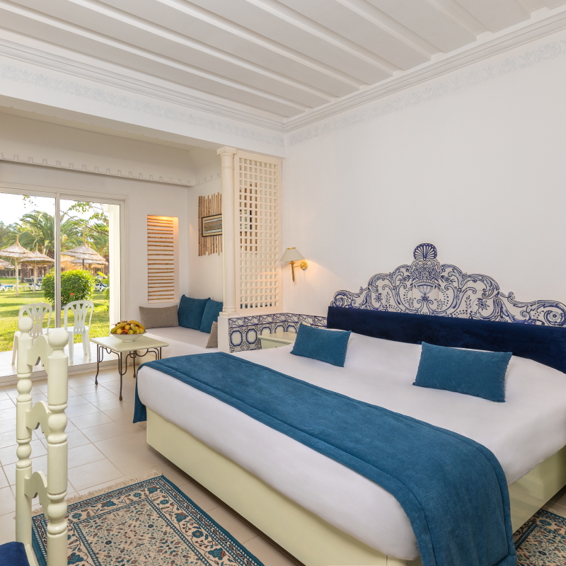 Votre Mondi Club L’hôtel dispose de 210 chambres décorées dans le style arabo-andalou et réparties entre un bâtiment et des bungalows. Ce Mondi Club vous offrira toutes les prestations nécessaires pour passer un agréable séjour en Tunisie : centre de spa de 300m², mini club pour enfants, 3 piscines, plage privée à proximité. Vous ne serez pas déçus ! À votre disposition : réception 24h/24, service bagage 24h/24, change, coffre-fort à la réception*, blanchisserie*, infirmier* et médecin* sur demande, photographe*, excursions*, réservation golf avec tarif préférentiels*,Mini frigo avec location et sur demande (pas dans les chambres), boutiques d’artisanat et de souvenirs*, superette*, discothèque* à proximité et wifi gratuit à la réception et dans les chambres, lobby et terrasse barbecue.*Avec supplément Votre chambre Pour un séjour agréable, vous serez logé dans une confortable chambre standard dans le bloc central et patio, pouvant accueillir jusqu’à 4 adultes maximum ou 2 adultes et 2 enfants. Elles ont toutes été récemment réaménagées et sont équipées de : terrasse ou balcon, wifi, climatisation (du 15/06 au 15/09), TV par satellite, lit bébé sur demande, salle de bains avec baignoire ou douche à l’italienne.*Avec supplémentMoyennant un supplément tarifaire, vous pouvez disposer d’une chambre familiale ou d'un bungalow tout en bénéficiant des mêmes équipements que la chambre standard. Une chambre familiale peut accueillir jusqu’à 5 adultes maximum tandis que le bungalow peut accueillir jusqu’à 3 adultes maximum. Bungalow Bungalow Restaurants et bars Séjournez l’esprit libre avec la formule « tout inclus» où vous aurez librement accès au : Restaurant central « les Zinnias » où vous trouverez des spécialités locales mais également internationales sous forme de buffet :Petit déjeuner : 7h00 - 10h00Petit-déjeuner tardif: 10h00 - 11h30Déjeuner : 12h30 - 14h00Dîner : 18h30 - 21h30Snack : 16h00 - 17h00 Restaurant tunisien « TUNISIANO » réservable gratuitement 1 fois par séjour :Dîner : 19h00 – 22h00 4 bars et 1 café à votre disposition pour vous rafraîchir :Lobby Bar : 09H00 - 00H00 Bar piscine : 10h00 - 00h00 (snacks tels que mini sandwich, cake, pizza : 15h - 17h30 et une cocktail party : une fois par semaine)Bar plage : 10h00 - 18h00 boissons non alcoolisée (eau et soda) ouvert à partir du 01/06 selon les conditions météorologiquesEnglish Bar*: 23h00 - 01h00Café maure : 15H00 – 23h00 (café turc* et chicha* payants, et thé à la menthe gratuit)*Avec supplément À noter : la formule « tout inclus » comprend les boissons de 9h à minuit. Les horaires sont donnés à titre indicatif et peuvent être soumis à modification sans préavis de la part de l’hôtelier et ce, sans que la responsabilité de Mondial Tourisme en soit engagée. Les boissons en canette ou en bouteille, les jus de fruits frais, les alcools importés ne sont pas inclus. Vos activités et loisirs Pour rendre votre séjour agréable, commencez votre journée par un plongeon dans l’une des piscines de l’hôtel ou profitez des nombreuses activités qui vous seront proposées parmi lesquelles : plage réaménagée à proximité accessible avec une carriole (avec chaises longues, matelas, parasols), base nautique* et location de serviettes payante*, grande piscine extérieure, une piscine couverte et chauffée (du 01/04 au 30/04), piscine avec toboggans (du 01/06 au 31/10) (soumis aux conditions climatiques), piscine extérieure pour enfants, Amphithéâtre du 01/06 au 31/10 en fonction du nombre de participants et des conditions climatiques, et centre de spa*.Les animateurs francophones Mondi Club vous proposeront des activités sportives et ludiques en journée ainsi que des animations nocturnes. Parmi les animations sportives, vous pourrez profiter des activités suivantes : water-polo, gymnastique, step, zumba, pétanque, terrain multisport, quad*, balade en mer*, billard américain*, terrain de football, mini-golf et autres jeux. Vous pourrez également pratiquer équitation* et sports nautiques* (dont parachute, banana, ski, jet ski), à proximité du Mondi Club. *Avec supplémentÀ noter : au vu de la météo et/ou en basse saison certains équipements extérieurs peuvent ne pas être praticables et certaines activités peuvent être annulées ou non programmées. Bien-ÊtreD’une superficie de 300 m², le centre de spa* vous accueille de 9h à 13h et de 14h à 18h avec les prestations suivantes : hammam*, massages*, sauna*, soin esthétique*, salon de coiffure*, salle de fitness, boutique*. Vous disposerez gracieusement de tisanes, cape de bain, peignoir et claquettes durant votre cure. *Avec supplément Pour les enfants Une équipe dédiée accueillera au mini-club vos enfants de 4 à 12 ans et leur proposera des activités adaptées à leur âge. Ouvert tous les jours de 10h à 12h et de 15h à 17h. En plus de la piscine pour enfant, ce mini club dispose d’une aire de jeux en plein air et propose une soirée « mini disco » tous les soirs. *Avec supplément Locate Situation Au cœur d’un jardin luxuriant et à proximité d'une très belle plage, le Mondi club Shalimar se trouve à 6 km du centre-ville d’Hammamet, à 60 km de l'aéroport de Tunis et 100 km de l’aéroport de Monastir.