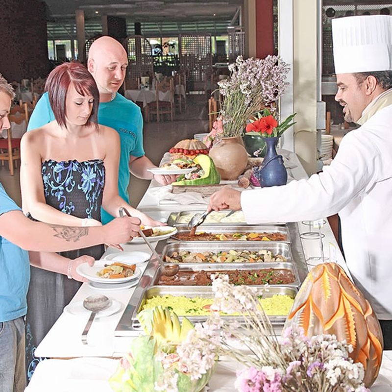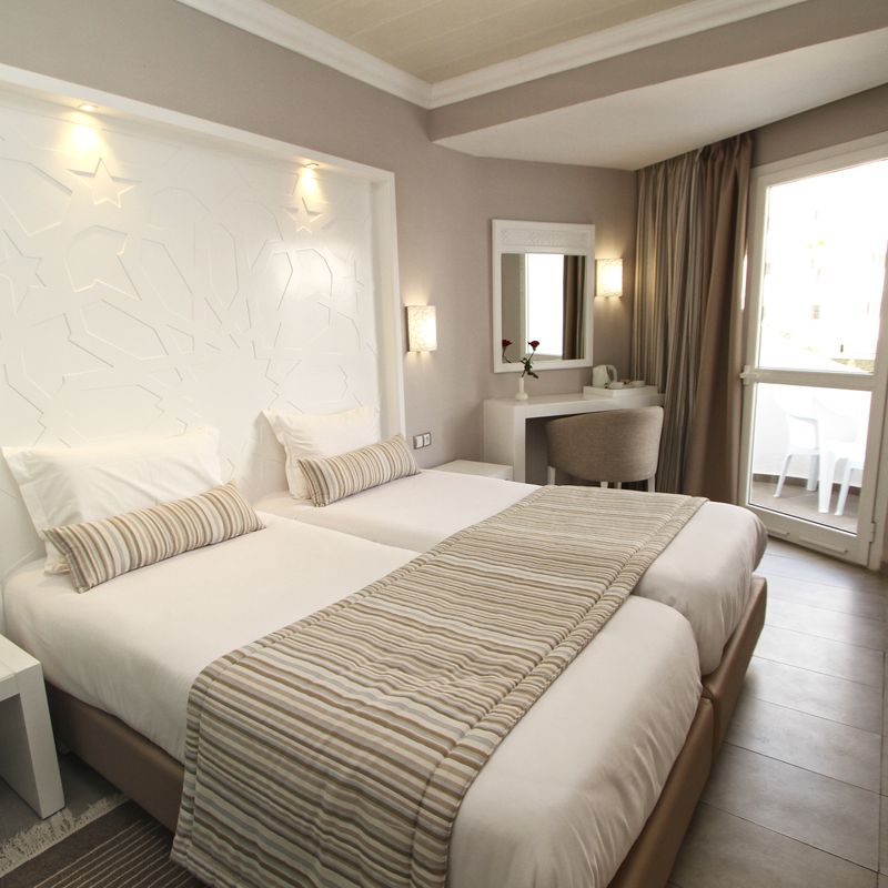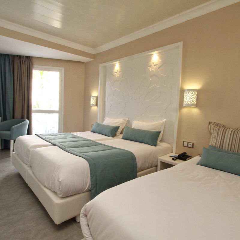 Votre hôtel Le Sahara Beach AquaPark Resort 3* dispose de 649 chambres, réparties dans 3 bâtiments de 7 étages. Son architecture est un compromis entre tradition et modernité et sa décoration sobre offre un certain apaisement dès l’entrée. Vous aurez à votre disposition une large gamme d’activités et d’animations divertissantes, des piscines avec jeux aquatiques et une gastronomie locale et internationale raffinée. Pour votre confort : réception 24h/24, bazar* (15/06 au 15/09), Wifi dans l’hotel et dans les chambres, librairie*, salle de jeux*, service de change, coffre-fort à la réception*, boutiques*, parking, photographe*, blanchisserie*, serviettes de plage*, salon de coiffure*, distributeur de billet à proximité.* Avec supplément Votre chambre Vous serez logé en chambre standard d’environ 23 m² pouvant accueillir jusqu’à 3 personnes. Dans le cas d’une chambre à usage triple, l’hôtel met à disposition des clients une chambre double équipée de 1 lit double ou de 2 petits lits et de 1 lit d’appoint (sofa, canapé-lit). Toutes les chambres sont équipées de : balcon, climatisation (15/06-15/09), wifi, téléphone, salle de bains équipée avec baignoire ou douche à l’italienne, bouilloire (sur demande).Moyennant un supplément, vous pourrez loger dans une chambre vue mer (3 personnes maximum) ou chambre communicante (4 adultes + 1 enfant ou 2 adultes + 3 enfants maximum) pour plus de confort. Restaurants et bars Restaurants et bars Séjournez l’esprit libre avec la formule « tout inclus ». Les repas sont servis sous forme de buffet variés dans les restaurants principaux de l’hôtel, Restaurant principal et Salambo. Un buffet riche et varié de spécialités locales mais également internationales vous y sera proposé.Votre formule comprend :Petit déjeuner : de 07h00 à 10h00Déjeuner : de 12h30 à 14h30Dîner : de 18h30 à 21h00Restaurant Beach Snack Bar : 12h00 à 15h00 Restaurant Pancake Snack Bar : 15h00 à 17h00Snack-bar Telegraph : de 12h00 à 17h00 Restaurant à la carte* El Campo spécialités italiennes et méditerranéennes : de 12h00 à minuitRestaurant à la carte La Brise*, spécialités méditerranéennes : 12h00 à 23h00 Pour vous rafraichir également 8 bars et 1 café seront à votre disposition :Bar piscine Caravelle : de 10h00 à minuit (de juin à septembre)Lobby bar Asfar : de 10h00 à minuitBar Telegraph : 10h00 à 18h00Bar Skanes : de 17h00 à 23h00Piano-bar Syrte : de 17h00 à minuitBar spectacle : de 20h00 à 23h00Bar plage 51* : de 10h00 à minuitCafé maure* : de 16h00 à 23h00Bar Sahara Disco Club* : 11h00 à 02h00* Avec supplémentÀ noter : la formule tout inclus comprend les boissons de 10h00 à minuit (servies au verre). Les horaires sont donnés à titre indicatif et peuvent être soumis à modification sans préavis de la part de l’hôtelier et ce, sans que la responsabilité de Mondial Tourisme soit engagée. Les jus de fruits frais, les boissons importées, les cocktails mais aussi les boissons en bouteille et canette ne sont pas compris. Vos activités et loisirs Une équipe de professionnels vous proposera une animation en journée avec des activités sportives et ludiques, ainsi qu’une animation en soirée. À votre disposition : accès direct à la plage, 3 piscines extérieures dont une avec cascades et une autre avec bain à remous, 1 piscines pour enfant, 1 aquapark de 12 toboggans, 1 piscine couverte (chauffée de Novembre à Avril), 3 piscines avec toboggans, aérobic, basket-ball, tournois de beach-volley et de football, gymnastique, boccia, water-polo, zumba, stretching, pilates, yoga, mini-golf, fléchettes, cours de danse, pétanque, tir à l’arc, tennis de table, courts de tennis (1h/jour gratuite), kayak (1h/jour gratuite), billard*, bateau à pédales*, équitation*, salle de jeux*, banana boat*, jet-ski*, balade en bateau*, parachute ascensionnel*, golf*, vélos*, discothèque de 23h00 à 02h00 (boissons avec supplément), excursions*. L’hôtel met à votre disposition un centre de spa et de fitness* vous permettant de vous ressourcer. Vous pourrez profiter des nombreuses installations en oubliant le monde qui vous entoure et libérer votre esprit dans un univers calme et reposant. À votre disposition : hammam, sauna, massages, coiffeur, soins esthétiques, salle de sport.*Avec supplément Pour les enfants : mini-club pour les 4 à 7 ans, maxi-club pour les 8 à 12 ans et teeny-club pour les ados entre 13 et 17 ans. Ouverts 7 jours/7 de 10h00 à 12h00 et de 15h00 à 17h00.Le programme du mini-club comprend des mini-shows et des jeux, alors que le programme du maxi-club inclut des compétitions sportives et des jeux passionnants.Le teeny-club, quant à lui, propose entre autres des jeux et des tournois de football en soirée.À noter qu’au vu de la météo et/ou en basse saison certains équipements extérieurs peuvent ne pas être praticables et certaines activités annulées ou non programmées. Locate Situation À 4 km de l’aéroport de Monastir et à 160 km de celui de Tunis (environ 2h de transfert en cas d’arrivée/départ sur Tunis). Le centre-ville de Monastir est à 10 km.