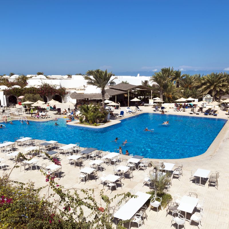 En plein milieu d’une palmeraie de 11 hectares, cet hôtel dispose de 354 chambres réparties dans 7 petits bâtiments de style local (menzel), disposant chacun d’un jardin intérieur. À votre disposition : réception 24h/24, bureau de change, distributeur automatique de billets, boutique d’artisanat*, serviettes de plage (avec caution), chaises longues, parasols, wifi, service de buanderie* et location de voiture*.