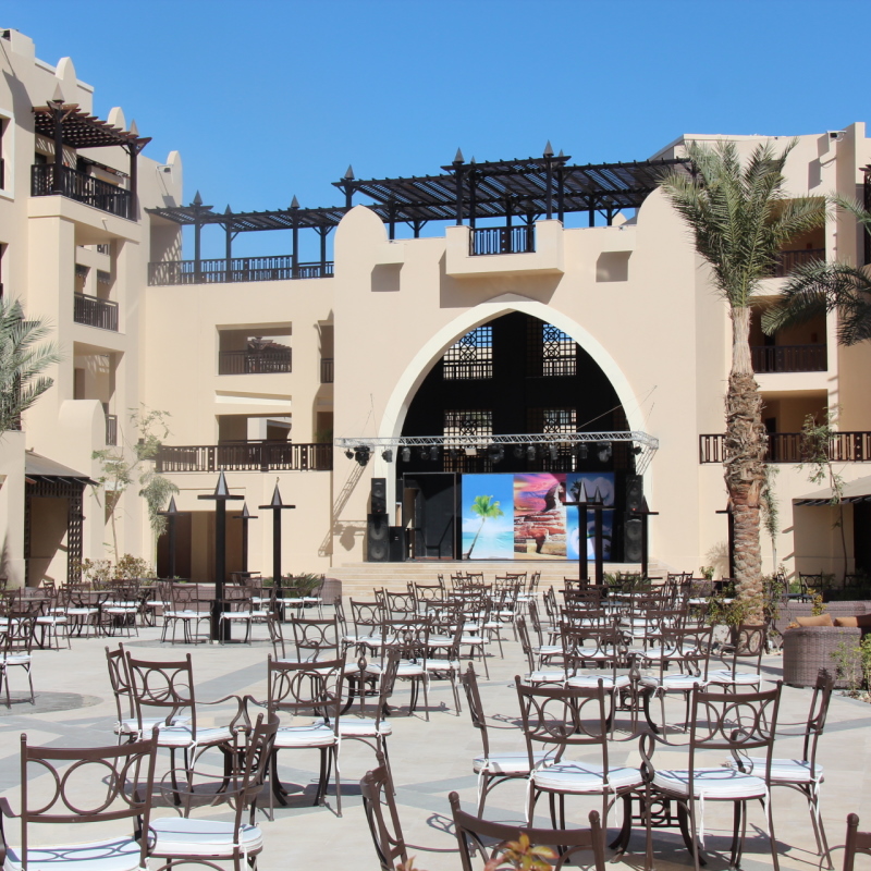 Votre hôtel Au sud d’Hurghada, l’hotel Steigenberger Aqua Magic 5* est l’endroit rêvé pour passer de merveilleuses vacances faites de farniente, de glissades et de baignades. Au Steigenberger Aqua Magic, vous trouverez tout ce dont vous aurez besoin pour passer un excellent séjour, à savoir : un centre de spa, une plage de sable privée, un mini club et surtout un aquapark. L’hôtel Steigenberger Aqua Magic possède 718 chambres lumineuses, spacieuses et décorées avec goût. A disposition : réception 24h/24, room service*, parasols, médecin sur demande*, distributeur de billets, service de change, boutiques*, blanchisserie*, location de voitures*, salon de beauté*, bibliothèque, wifi, service de navette une fois par jour, 4 fois par semaine avec réservation préalable*.* Avec supplément Votre chambre Vous logerez en chambre standard pouvant accueillir 2 personnes. Toutes les chambres sont équipées de : télévision satellite, téléphone, coffre-fort*, minibar (ravitaillé quotidiennement avec des boissons non alcoolisées locales), nécessaire à thé et à café, salle de bain avec baignoire et douche, sèche-cheveux, climatisation, wifi dans les parties communes.*Avec supplémentMoyennant un supplément, la chambre Deluxe triple vous permettra de loger 3 adultes. Dans le cadre d’une triple, l'hôtel met à disposition des clients une chambre double équipée de 1 lit double (ou de 2 lits twin) et de 1 lit d’appoint.Pour loger votre famille, vous avez la possibilité de séjourner dans une chambre Family pouvant accueillir jusqu’à 2 adultes et 2 enfants. Restaurants et bars Pour un séjour sous le signe du confort, vous bénéficierez de la formule « tout inclus », qui comprend les repas servis au restaurant principal de l’hôtel le Magic Flavors où vous vous régalerez de buffets internationaux ainsi que des snacks. Votre formule tout inclus comprend :Petit déjeuner : 08h00 – 10h30Déjeuner : 13h00 – 15h00Dîner : 18h00 – 21h30 (en hiver) / 18h30 - 22h00 (en été)Envie de gouter à d’autres saveurs ? Des restaurants à la carte* sont disponibles sur réservation et avec supplément :Le Magic Palappa Restaurant, qui vous proposera de gouter une variété de spécialités italiennes.Petit déjeuner : 07h00 – 10h30Petit déjeuner tardif : 10h30 – 12h00Déjeuner : 13h00 – 16h00Dîner : 18h30 – 21h00Le MagicBlue Restaurant, qui propose une sélection de collations et un déjeuner à la carte.Déjeuner & Glaces : 12h00 – 17h00Le Magic Orient RestaurantDiner Oriental : 18h30 – 20h30Le Magic Souk (Collations et boissons locales et internationales - service à emporter)Food court : 17h00 – 23h00Le Magic Sky restaurant, situé sur le toit de l’hôtel, d’où vous aurez une vue imprenable sur la mer Rouge, tout en dégustant une cuisine gastronomique.Diner : 18h30 – 21h00 Plusieurs bars sont à votre disposition pour vous relaxer tout en vous désaltérant : Magic Sky Bar : de 16h30 à 00h00Magic splash Bar : 09h00 jusqu’au coucher du soleil (en hiver) et 09h00 à 18h00 (en été) Glaces de (12h00 à 17h00)Magic Blue Bar : 09h00 jusqu’au coucher du soleil (en hiver) et 09h00 à 18h00 (en été)Magic Relax Bar (Adults only) : 09h00 jusqu’au coucher du soleil (en hiver) et 09h00 à 18h00 (en été)Magic Lounge : 24h/24 (avec collation de 00h à 05h00)A noter : Les horaires sont donnés à titre indicatif et peuvent être soumis à modification sans préavis. Les boissons alcoolisées importées, les jus de fruits frais, les boissons en canettes en en bouteille ne sont pas incluses dans la formule. Vos enfants, auront également droit à leur buffet au restaurant Magic Kids où ils découvriront de nouvelles saveurs. Vos activités et loisirs Pour rendre votre séjour agréable, profitez des nombreuses activités et infrastructures qui vous seront proposées parmi lesquelles : plage privée, 7 piscines extérieures de 2600m2, aquapark avec 6 toboggans et bateau de pirates pour enfants, fléchettes, tennis de table, babyfoot, billard, centre de fitness, pédalos et des canoes (30 min par séjour gratuit), centre de spa* (sauna, hammam et hammam turc)*, parcours de golf à proximité*, sports nautiques*, animation internationale en journée et en soirée.Pour les enfants : mini-club international avec aire de jeux pour les enfants de 4 à 12 ans de 09h00 à 12h00 et de 14h00 à 17h00 A noter : Qu’au vu de la météo et/ou en basse saison, certains équipements extérieurs peuvent ne pas être praticables et certaines activités annulées ou non programmées. Les activités, les sports et les soirées sont encadrées par une équipe d’animation internationale. Locate Situation Au Steigenberger Aqua Magic, vous pourrez partir à la découverte de la région d’Hurghada, visiter l’île de Giftun situé à 13 km et aussi la nouvelle marina à 10 km. L’aéroport internationnal d’Hurghada se trouve à seulement 5 km.