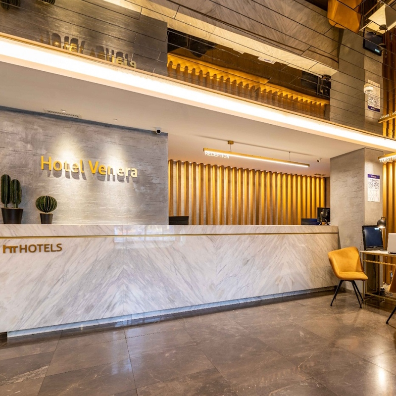 L’hôtel Venera 4* se situe dans le centre d’Istanbul, à 1 km du Grand Bazar et à 2km de Sultanahmet. Le pont de Galata se trouve également à 2km. L’hôtel propose 93 chambres confortables, décorées dans un style moderne. A votre disposition : réception 24h/24, room service*, spa (piscine intérieure de 10h00 à 22h00, sauna, hammam*, massages* et soins*), salle de conférence, wifi.